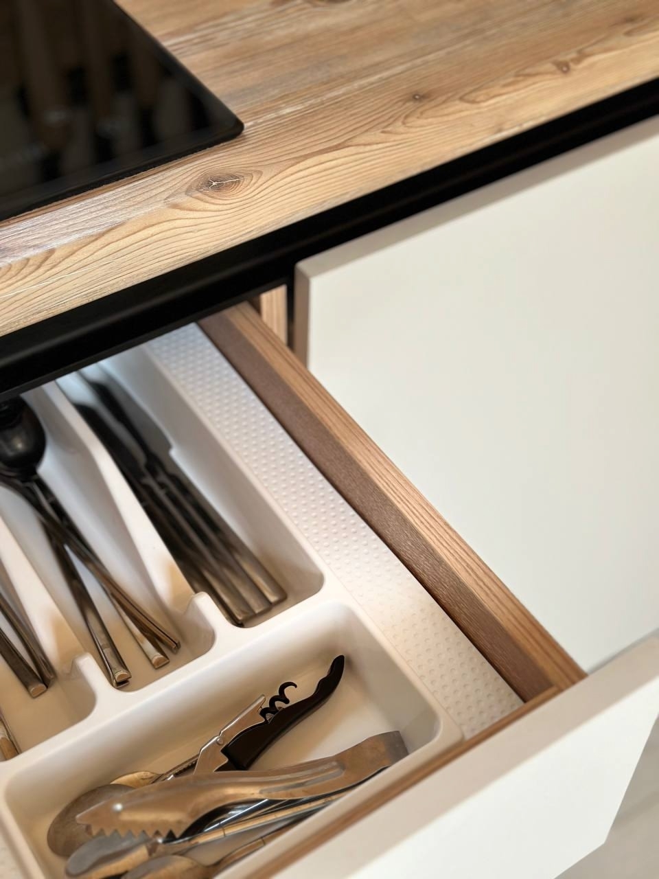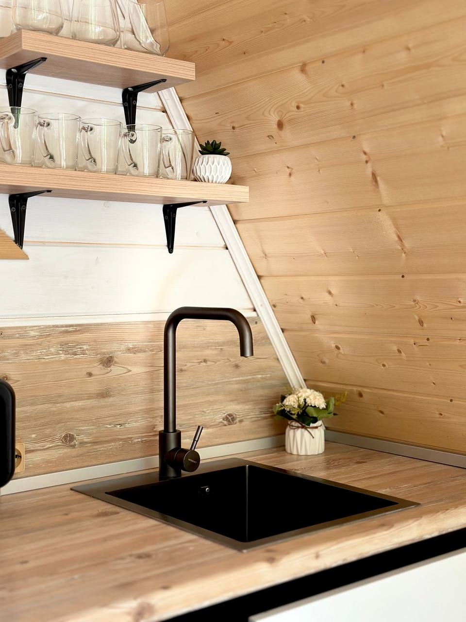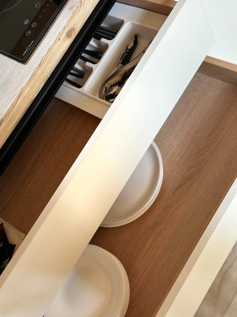 ‣ кухня со всем необходимым для приготовления пищи (холодильник с морозильной камерой, чайник, индукционная варочная панель на 2 конфорки, все виды тарелок черного и белого цветов, столовые приборы, стеклянный салатник, три кастрюли разных размеров, сковорода, чашки для эспрессо, чашки для чая/кофе, стаканы, бокалы под красное вино, бокалы под белое вино, разделочные доски, шампуры, зерновая кофемашина с зернами внутри, чай, соль/сахар, подсолнечное масло/соевый соус/некоторые приправы);