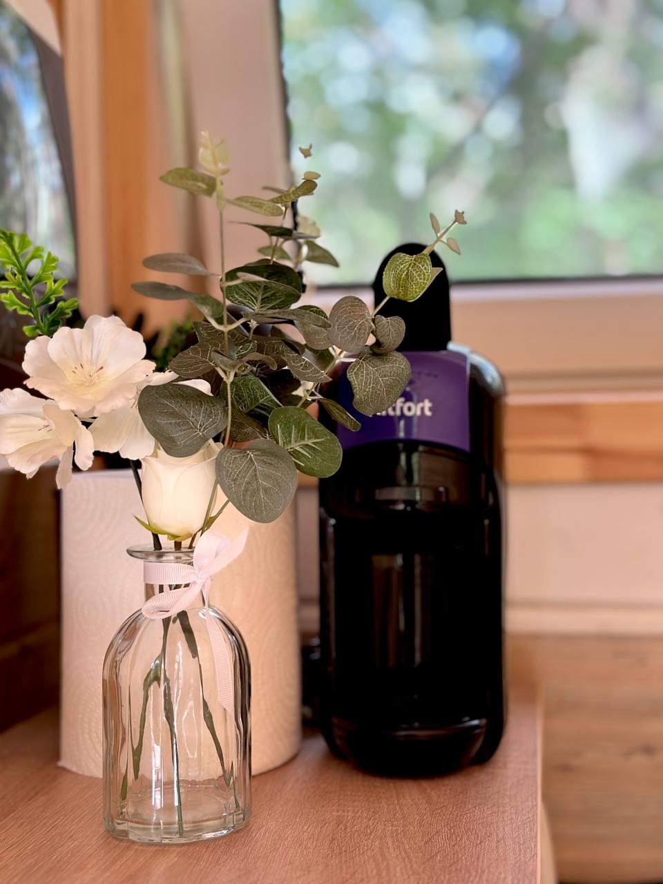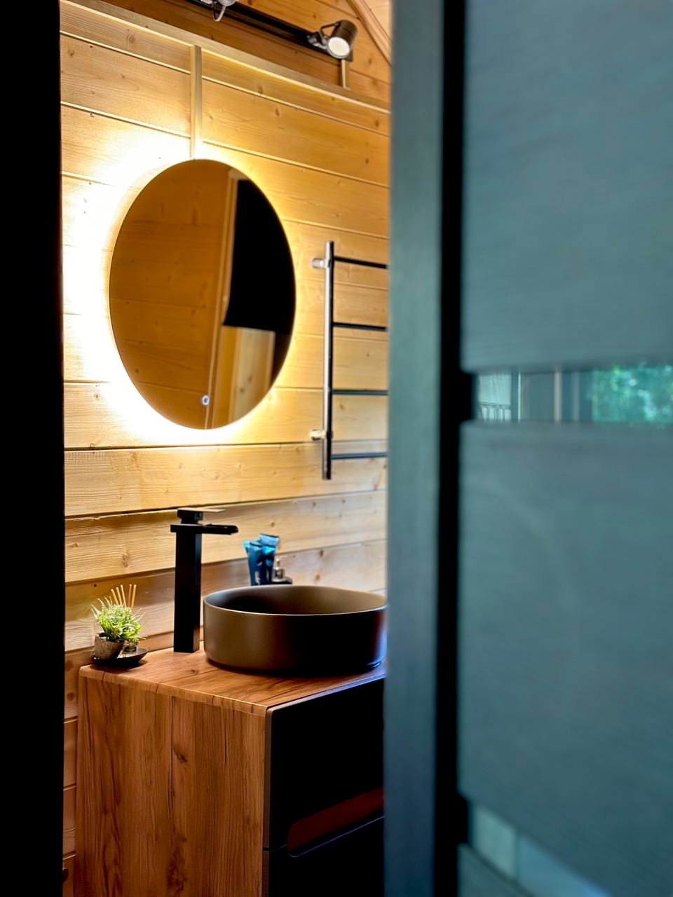 ‣ санузел (душевой уголок, туалет, подвесная тумба с раковиной, бойлер, фен, полотенца, ватные палочки/диски, одноразовые зубные щетки, диспенсер с туалетной бумагой, диспенсер с гелем для душа/шампунем, мыло, освежитель воздуха);